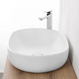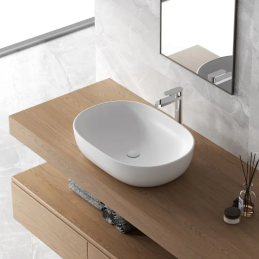 Ciotola Lavabo Ovale in ceramica colore bianco opaco da appoggiare sul piano senza fissaggio.