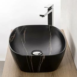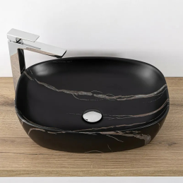 Ciotola Lavabo Ovale in ceramica colore nero effetto marmo da appoggiare sul piano senza fissaggio.