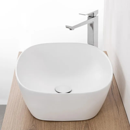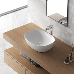 Ciotola Lavabo Ovale in ceramica colore bianco opaco da appoggiare sul piano senza fissaggio.