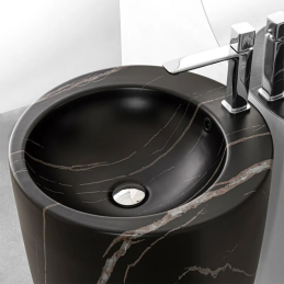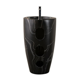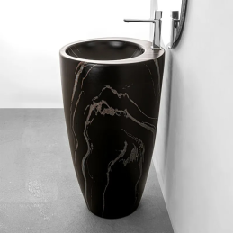 Lavabo freestanding a terra in ceramica colore nero effetto marmo, monoblocco con libera installazione, con scarico a parete o a pavimento, con foro troppo pieno.