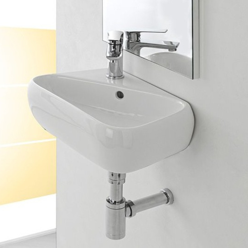 Lavabo bagno con vasca a destra 45x27,5 sospeso in ceramica bianco lucido