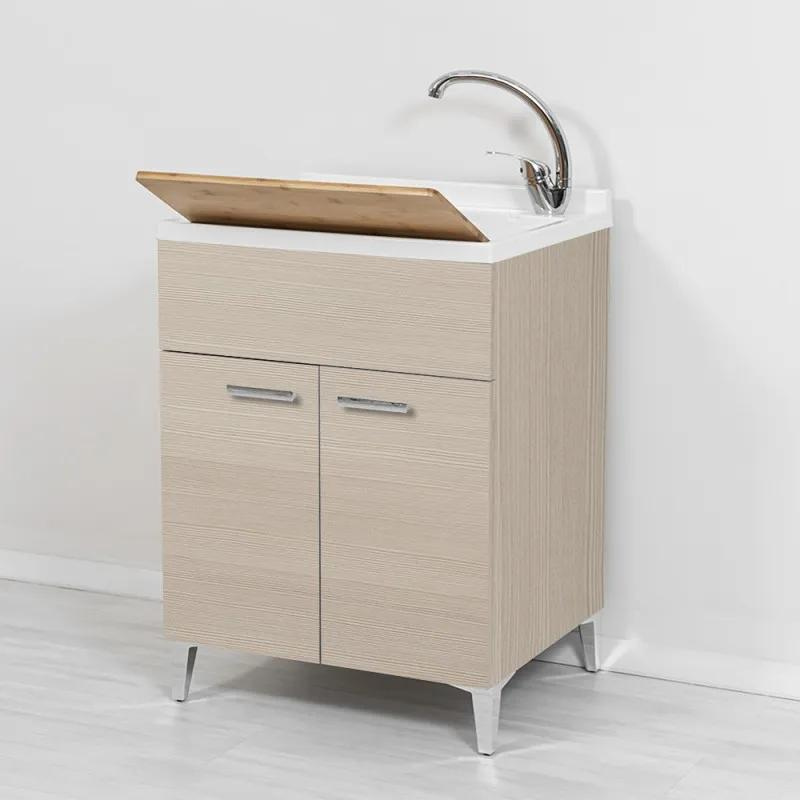 Lavatoio 60x48 Colore Rovere Dolomite con Vasca in Ceramica 2 Ante linea Alba