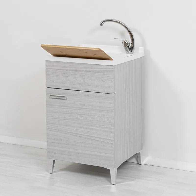Lavatoio 50x50 colore grigio con vasca in resina e 1 anta linea Stella