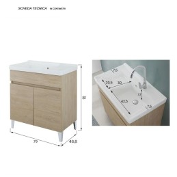 Lavatoio a terra in legno melaminico colore Rovere dolomite con 2 ante.