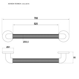 Maniglia di sostegno realizzata in ABS con finitura superficiale cromo lucido, facile da montare e tenere pulito.