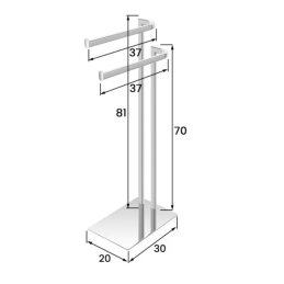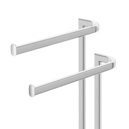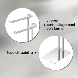 Piantana porta asciugamani Fusion con 2 braccia e base rettangolare, ideale per aggiungere funzionalità e stile all’arredo bagno.