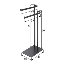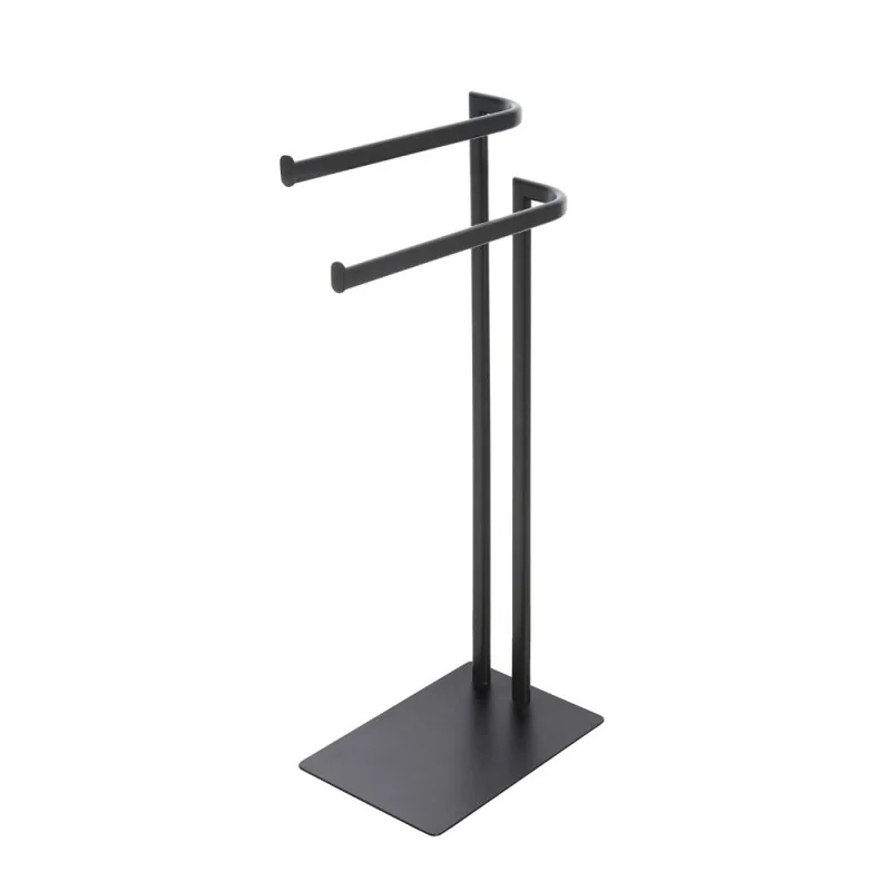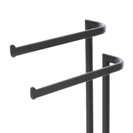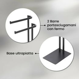 Piantana porta asciugamani Fusion con 2 braccia e base rettangolare, progettata per offrire funzionalità e stile all’interno del bagno.