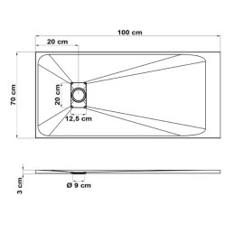 Piatto doccia 70x100 cm grigio effetto pietra in SMC, un materiale riciclabile in poliestere rinforzato con fibre di vetro. Resistente alla corrosione, leggero, impermeabile e antiscivolo con spessore ultra slim di 3 cm a filo pavimento, con possibilità di taglio su misura e cover piletta inclusa.