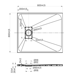 Piatto doccia 80x80 cm bianco effetto pietra in SMC, un materiale riciclabile in poliestere rinforzato con fibre di vetro. Resistente alla corrosione, leggero, impermeabile e antiscivolo con spessore ultra slim di 3 cm a filo pavimento, con possibilità di taglio su misura e cover piletta inclusa.