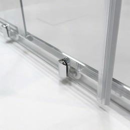 Parete doccia in vetro con porta scorrevole di cristallo temperato trasparente da 5 mm di spessore.