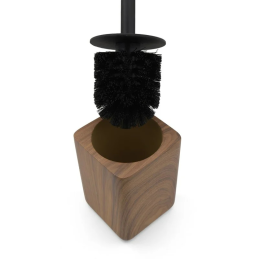 Porta scopino water da appoggio della linea Radici, realizzato in poliresina dall’effetto legno, morbida al tatto e resistente, ideale per donare eleganza all’arredo bagno.