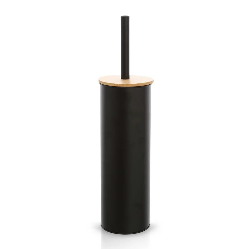 Il portascopino da appoggio Haiti in acciaio nero opaco e bambù naturale combina design nordico e funzionalità.