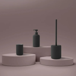 Bicchiere multiuso portaspazzolini da appoggio con superficie cannettata, ideale per organizzare gli accessori sul lavabo. Realizzato in ceramica soft-touch con finitura verde opaco, resistente e facile da pulire, per un look coordinato e uniforme in bagno. Funzionale e versatile, può contenere spazzolini, pennelli e piccoli oggetti.