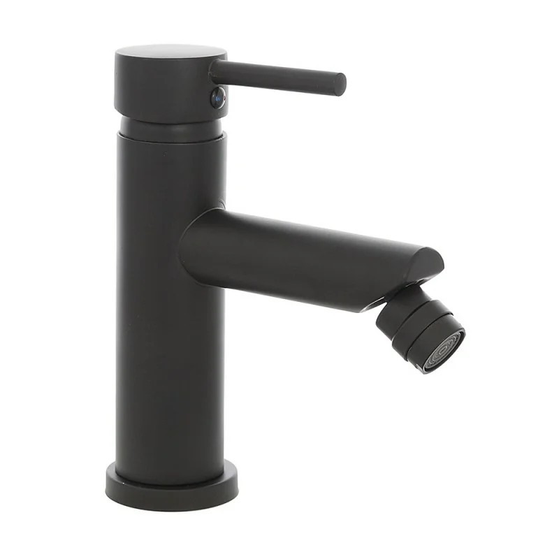 Miscelatore per bidet dalla forma tonda con monocomando a leva.