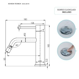 Massima praticità con il tappo di scarico clic/clac coordinato. Apri e chiudi con un semplice tocco: basta un dito.