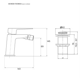 Miscelatore Monocomando per Bidet con scarico clic/clac Linea Quatra