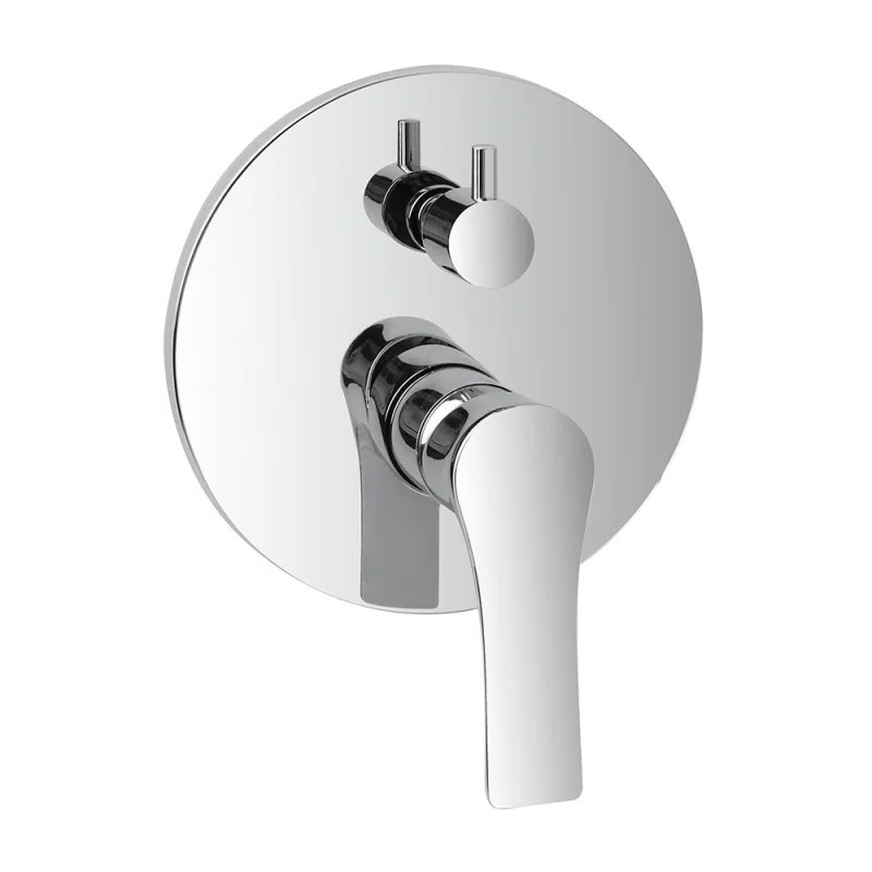 Miscelatore tondo ad incasso per doccia in ottone rifinito in cromo lucido che gli dona eleganza e robustezza all'usura del tempo. Manopola a leva per una regolazione fluida di temperatura e flusso. Completo di deviatore a 2 vie. Questo miscelatore, é adatto per ogni stile del bagno: si trova anche in set coordinati per tipologia e colore per un arredo...