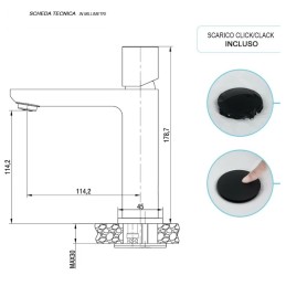 Incluso il sistema con piletta click-clack universale, flessibili e fissaggi.