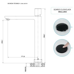 Incluso il sistema con piletta click-clack universale, flessibili e fissaggi.