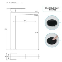 Viene fornito con il sistema piletta click-clack universale: basta un dito.