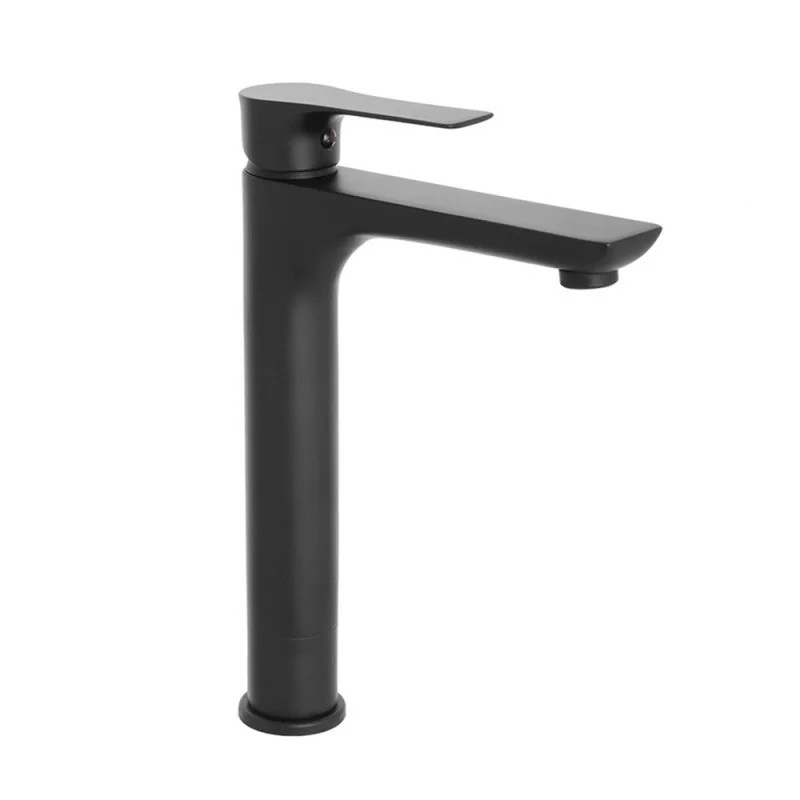 Miscelatore alto monocomando per lavabo realizzato interamente in ottone con finitura superficiale nero opaco che garantisce resistenza e lunga durata.