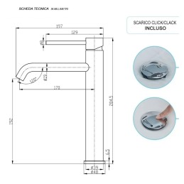 Miscelatore alto 29.5 cm per lavabo dalla forma tonda costruita in acciaio di colore cromo spazzolato. Completo di tappo di scarico abbinato del tipo clic/clac ovvero l'apertura e la chiusura avviene tramite pressione diretta sul tappo: basta un dito. Il montaggio è facilitato dalla presenza nella confezione dei flessibili di collegamento di tipo...