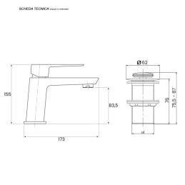 Miscelatore Lavabo Monocomando Cromo Piletta di scarico clic/clac linea Quatra
