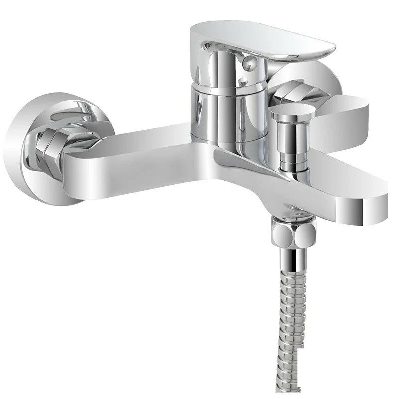 Miscelatore monocomando per vasca da bagno serie Kant realizzato interamente in ottone con finitura superficiale cromo lucido che garantisce resistenza e lunga durata. Completo di deviatore del flusso d'acqua al kit doccia. Completa il kit doccia un laccio flessibile di collegamento a doppia graffatura. La linea Kant è disponibile anche in set...