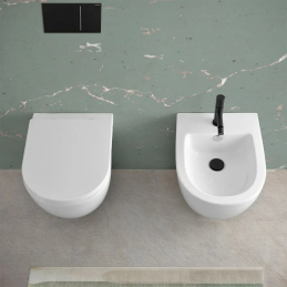 Vaso Sospeso bianco lucido con scarico tornado in ceramica linea Spin