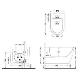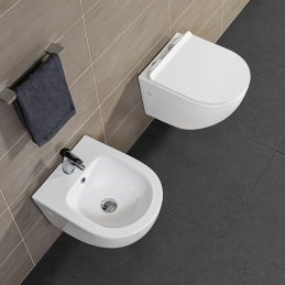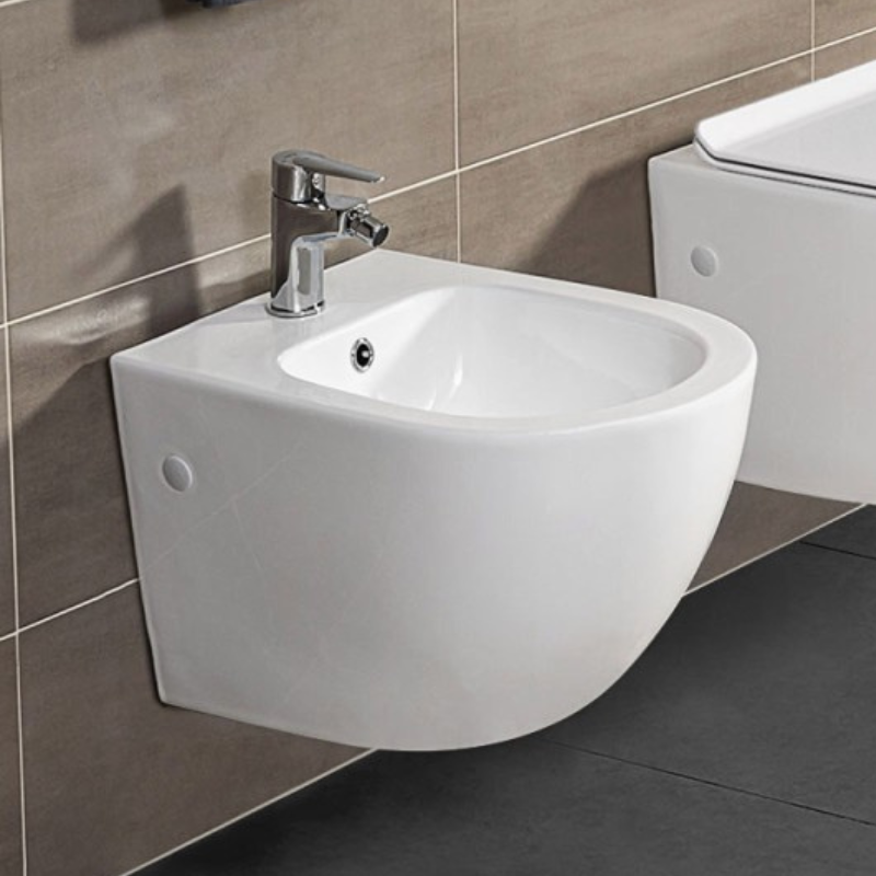 Bidet sospeso salvaspazio in ceramica bianca lucida senza brida, installazione a parete con staffe di fissaggio non incluse.