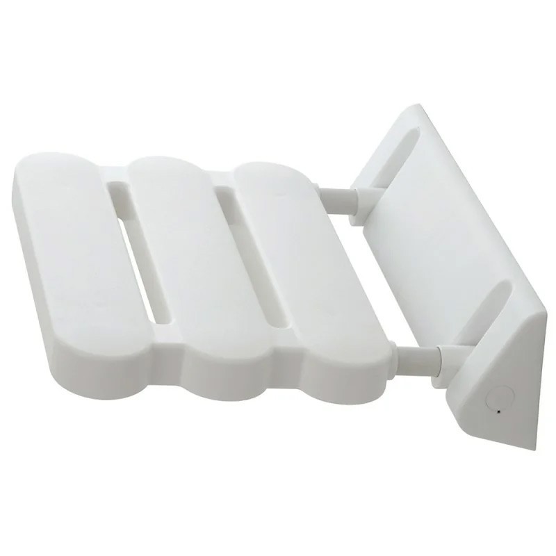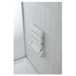 Sedile per doccia ribaltabile con installazione a muro tramite viti e tasselli non compresi nella confezione ma da acquistare a parte. Con una portata massima di 100 kg.