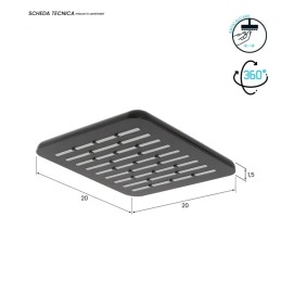 Soffione per doccia della linea Hidra a forma quadrata da 20 cm di lato, realizzato in ABS di colore Nero opaco.