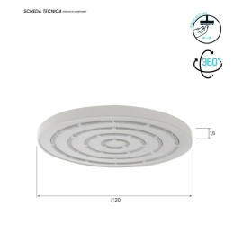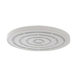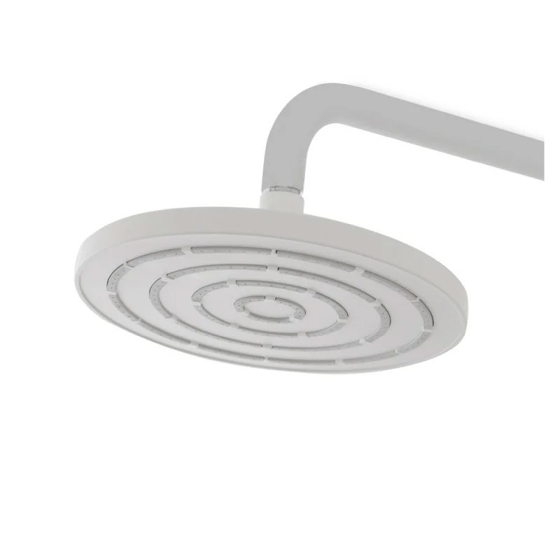 Soffione per doccia della linea Hidra di forma tonda con un diametro di 20 cm, realizzato in ABS di colore Bianco opaco.