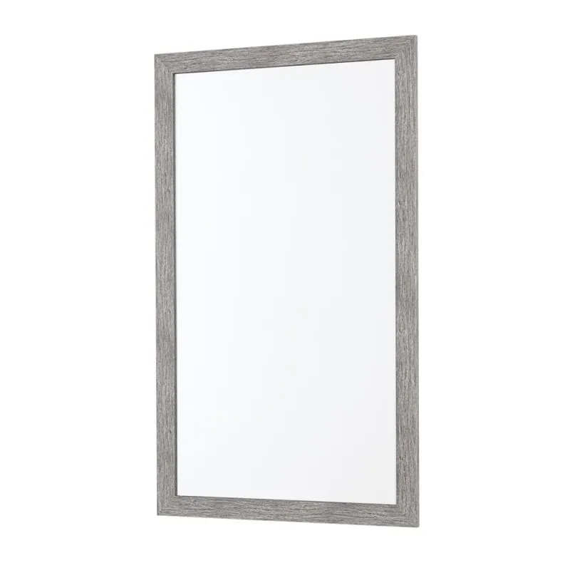 Specchio rettangolare 67x87 cm da bagno con cornice in legno colore grigio, installazione a parete reversibile con staffe incluse.