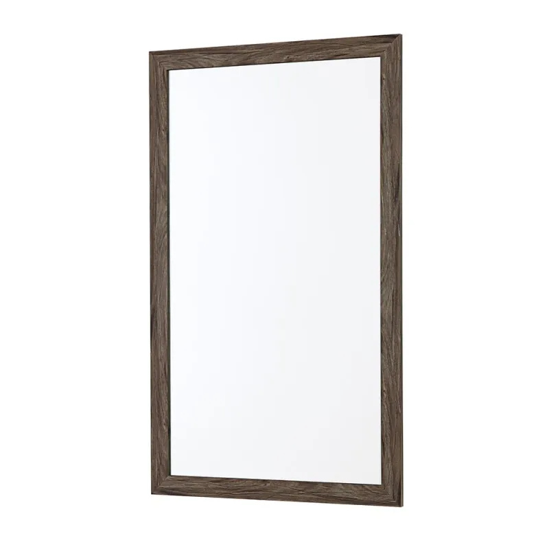 Specchio rettangolare 67x87 cm da bagno con cornice in legno colore grigio, installazione a parete reversibile con staffe incluse.