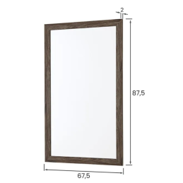 Specchio rettangolare 67x87 cm da bagno con cornice in legno colore marrone, installazione a parete reversibile con staffe incluse.