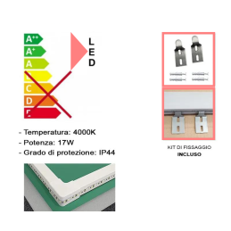 Specchio rettangolare 60x80 cm da bagno con 2 fasce illuminate da LED integrato, temperatura colore luce naturale 4000k, installazione a parete reversibile con staffe incluse, trasformatore incluso per collegamento a corrente senza pulsante ON/OFF, grado di protezione IP44, potenza 17w.