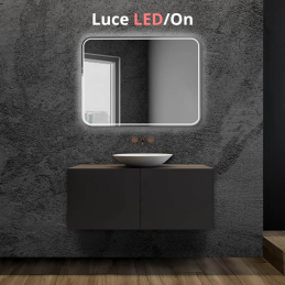 Specchio filo lucido rettangolare 60x80 cm da bagno con lampada LED 30cm integrata, temperatura colore luce naturale 4000k, grado di protezione IP44, potenza 5w, installazione a parete reversibile, sia in modo orizzontale che verticale.