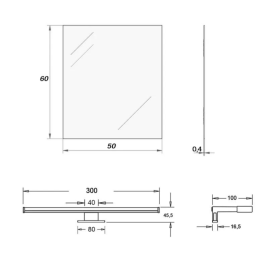 Specchio filo lucido rettangolare 50x60 cm da bagno con lampada LED 30cm integrata, temperatura colore luce naturale 4000k, grado di protezione IP44, potenza 5w, installazione a parete reversibile, sia in modo orizzontale che verticale.
