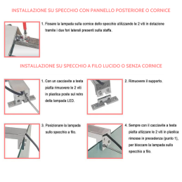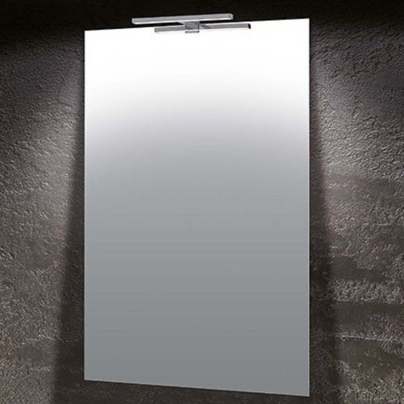 Specchio filo lucido rettangolare 70x90 cm da bagno con lampada LED 30cm integrata, temperatura colore luce naturale 4000k, grado di protezione IP44, potenza 5w, installazione a parete reversibile, sia in modo orizzontale che verticale.