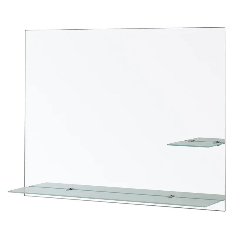 Specchio Rettangolare da bagno 80x60cm con 2 mensole in vetro satinato linea Shelf