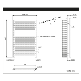 Termoarredo radiatore verticale in acciaio colore bianco con 33 tubi con diametro 22 mm, interasse 45 cm, installazione a parete, kit valvola e detentore NON INCLUSO.